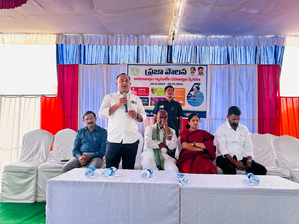 రాజన్న సిరిసిల్ల జిల్లా /న్యూస్ తెలంగాణ తెలంగాణ ప్రభుత్వం ప్రజా పాలన ప్రతిష్టాత్మకంగా ఏర్పాటు చేసిన ఆభయహస్తం ఆరు గ్యారెంటిల అమలుకు దరఖాస్తుల స్వీకరణ కార్యక్రమం 3వ వార్డు లక్ష్మి పురంలో ఏర్పాటు చేయడం జరిగింది. ఈ కార్యక్రమానికి శాసనసభ్యులు విప్ ఆది శ్రీనివాస్ ముఖ్య ఆతిదిగా,విశిష్ట ఆతిధిగా పురపాలక సంఘం చైర్ పర్సన్ రామతిర్దపు మాధవి-రాజు,కౌన్సిలర్ నిమ్మశెట్టి విజయ్ హజరు ఆయ్యారు. ఈ క్రమంలో ఎమ్మెల్యే తో కాంగ్రెస్ నాయకులు సాగరం వెంకటస్వామి,చంద్రగిరి,శ్రినివాస్ గౌడ్,కూరగాయల కోమురయ్య లు స్టేజి పైకి ఎక్కి కూర్చొన్నారు. వెంటనే కౌన్సిలర్ నిమ్మశెట్టి విజయ్ లేచి అధికారులను ఆడుగుతూ వారు ఏమైనా ప్రజా ప్రజాప్రతినిధిలా?ఆధికారులా అంటూ ప్రశ్నించారు.కాగా చైర్ పర్సన్ లేచి ఇది కాంగ్రెస్ సమావేశం ఆయితే మీరు నిర్వహించుకోండి ఆంటూ స్టేజి నుంచి క్రిందికి దిగి వెళ్లారు.ఆప్పుడు కాంగ్రెసు నాయకులు చైర్ పర్సన్ మాధవి-రాజు తో వాగ్వాదానికి దిగారు.ఆర్డీవో జోక్యం చేసుకోని కాంగ్రెసు నాయకులను క్రిందికి దిగిపోవాలని ఆదేశించించటం జరిగింది. దానితో చేసేదేమి లేక కాంగ్రెస్ నాయకులు స్టేజి దిగి స్టేజి ముందున్నా కుర్చీల్లో కుర్చున్నారు. దిగిపోయిన తర్వాత కౌన్సిలర్ నిమ్మశెట్టి విజయ్ కార్యక్రమాన్ని కొనసాగించారు.