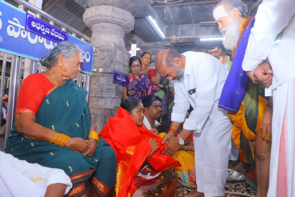 అనంతరం అద్దాల మండపంలో వారికి ఆలయ అర్చకులు వేదాశీర్వచనం అందించగా, ఆలయ ఈఓ కృష్ట ప్రసాద్ స్వామివారి తీర్థప్రసాదాలను మంత్రికి అందజేశారు.