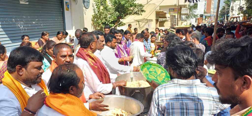 ఈ ఉత్సవాల్లో భాగంగా కాంగ్రెస్ సీనియర్ నాయకులు చంచల నర్సింగ్ రావు ఆధ్వర్యంలో మహా అన్న ప్రసాద వితరణ నిర్వహించారు.ఈ కార్యక్రమంలో ముఖ్య అతిథులుగా కాంగ్రెస్ సీనియర్ నాయకులు డాక్టర్ రాపోలు రాములు,మేడ్చల్ జిల్లా కాంగ్రెస్ పార్టీ బి బ్లాక్ ప్రధాన కార్యదర్శి కొత్త కిషోర్ గౌడ్ పాల్గొని శ్రీ శ్రీ శ్రీ దుర్గామాతకు ప్రత్యేక పూజలు నిర్వహించి అన్నప్రసాద వితరణ ప్రారంభించారు.ఈ కార్యక్రమంలో కాంగ్రెస్ నాయకులు దానగళ్ళ యాదగిరి,మాల్లేష్,దర్శన్, శ్రీనివాస్ గుప్తా,మధు,కె నర్సింహ్మ,ఎర్ర యాదగిరి, చెంచల్ల శ్రీనివాస్, ఉప్పరి విజయ్, మాజీ ప్రజా ప్రతినిధులు తదితరులు పాల్గొన్నారు.