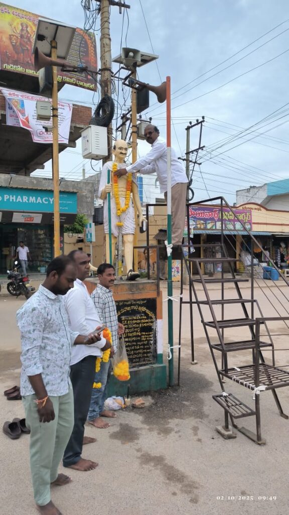 రాయికల్, అక్టోబర్ 2, న్యూస్ తెలంగాణ :- భారత జాతిపిత మహాత్మాగాంధీ 156వ జయంతి సందర్భంగా రాయికల్ పట్టణములోని గాంధీ విగ్రహనికి రాయికల్ మునిసిపల్ కమీషనర్ టి. మనోహర్ పూలమాల వేసి నివాళులర్పించారు. ఈ కార్యక్రమంలో మునిసిపల్ కమీషనర్ తో పాటు మునిసిపల్ సిబ్బంది పాల్గొన్నారు.