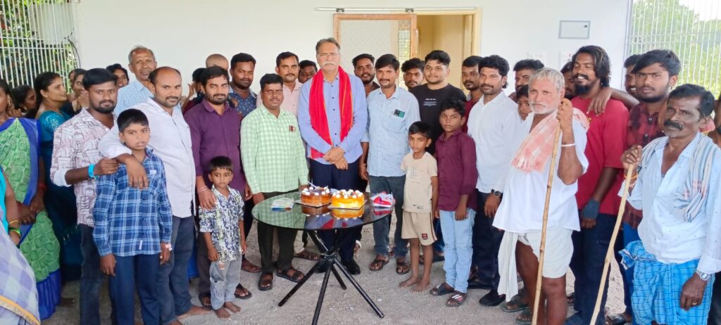 జగిత్యాల జిల్లా ఎండపల్లి మండలం పాతగూడూర్ గ్రామ ముద్దు బిడ్డ, కాంగ్రెస్ రాష్ట్ర నాయకులు పొనుగోటి శ్రీనివాస రావు (బాపు) పుట్టినరోజు వేడుక ఈనెల 13 సోమవారం రోజున ఉండగా, శుక్రవారం రోజున పలు పర్యటనలో భాగంగా ఉమ్మడి వెల్గటూర్ మండలానికి విచ్చేసిన పొనుగోటి శ్రీనివాసరావు కు ఆయన జన్మదిన వేడుకను పురస్కరించుకొని మండలంలోని రాజరాంపల్లి లో ముందస్తుగా జన్మదిన వేడుకలను గ్రామంలోని మహిళలు, అభిమానుల మధ్య ఘనంగా నిర్వహించారు. ఇందులో భాగంగా ఆయనతో కేక్ కట్ చేపించి, నిండు నూరేళ్లు ఆయురారోగ్యాలతో ఉండాలని కోరుకుని, శుభాకాంక్షలు తెలుపుతూ ఆయనకు కేకుల తినిపించారు.